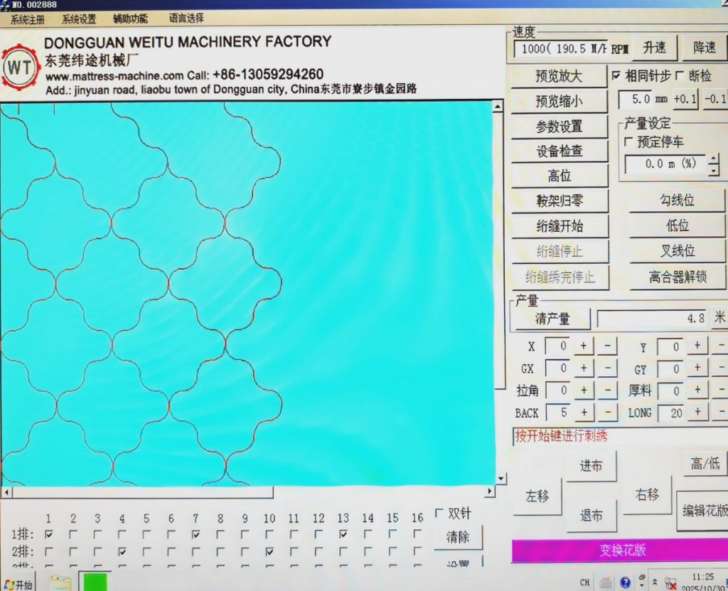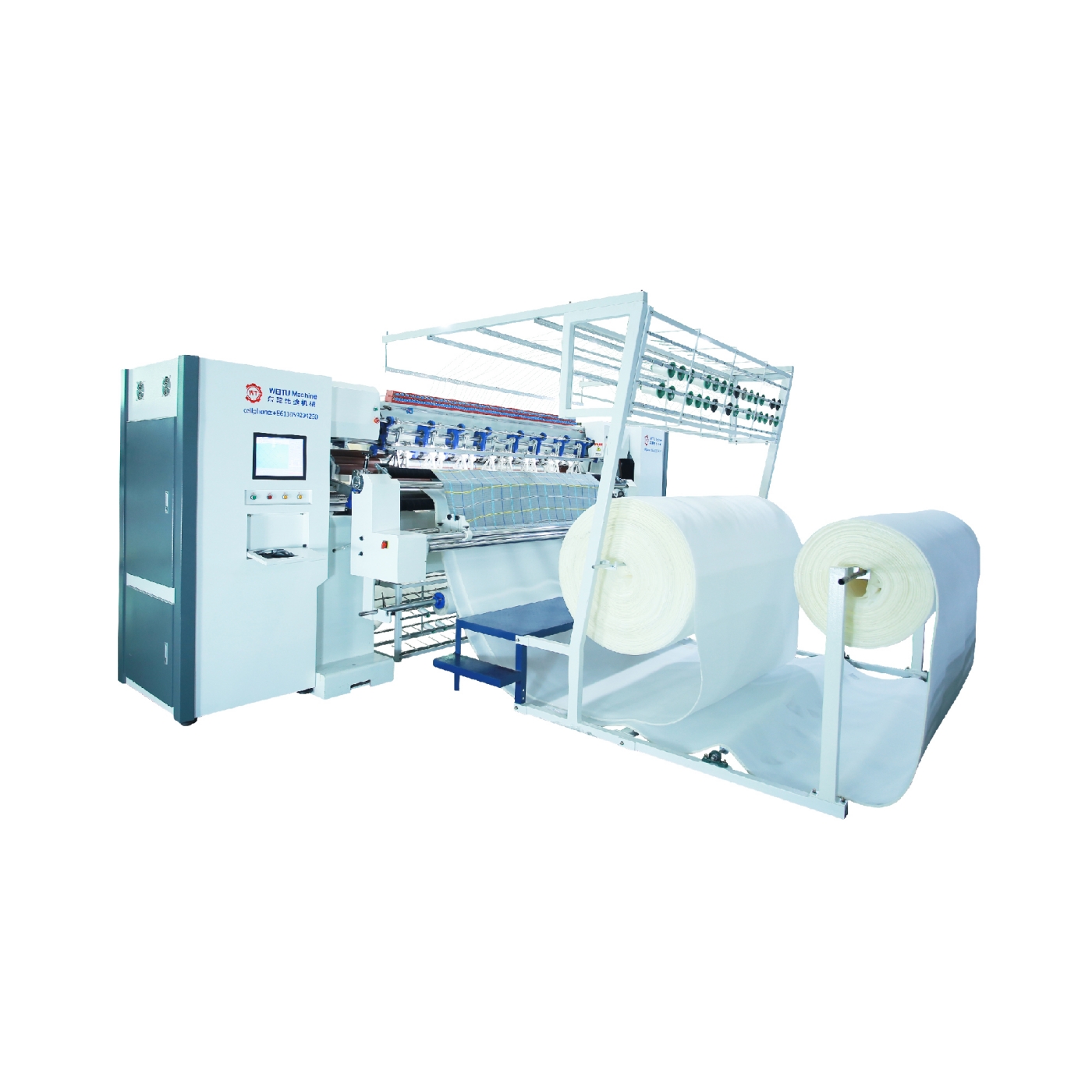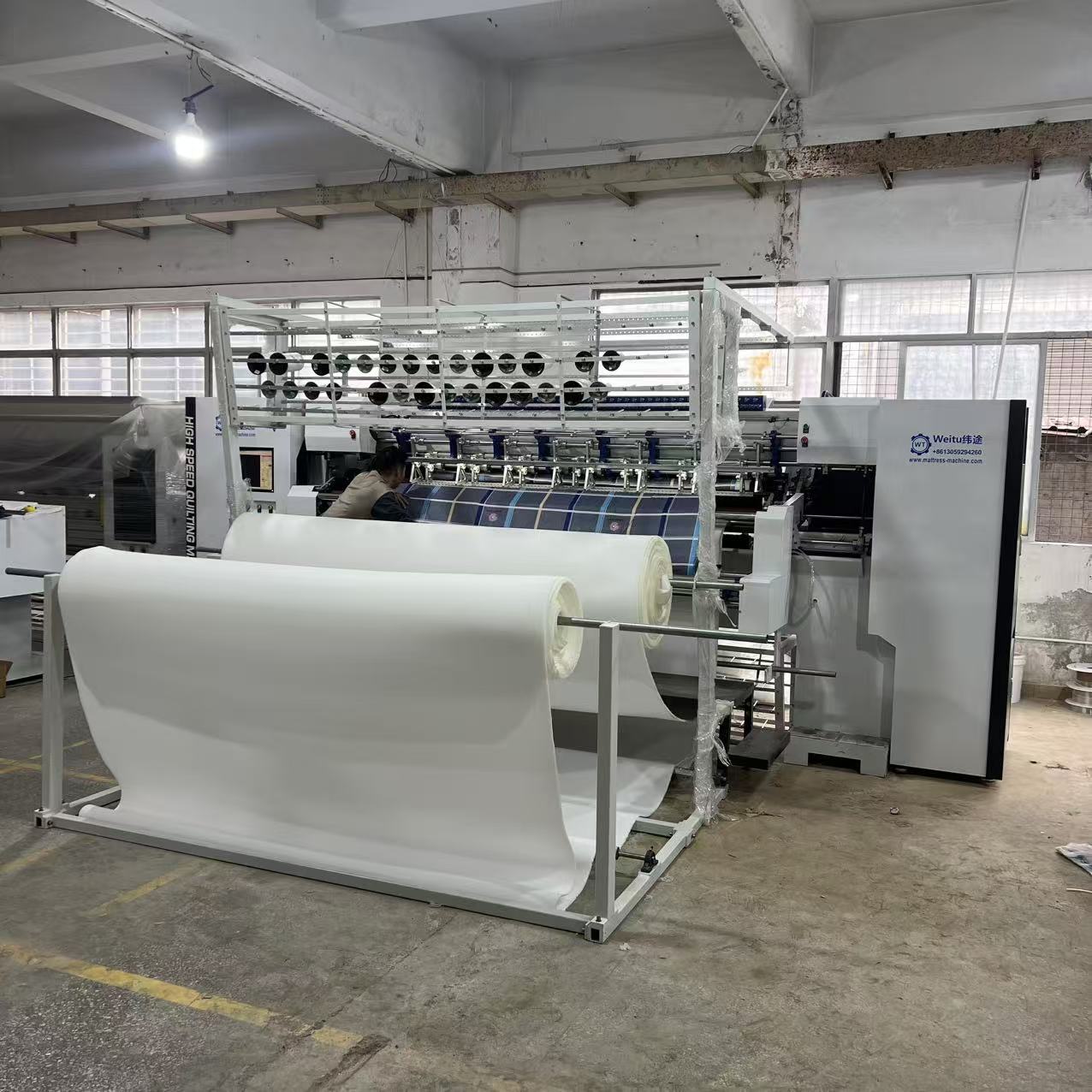 A multi-needle quilting machine is a specialized industrial sewing machine used primarily in the mattress and bedding industry to quilt multiple layers of fabric, foam, and padding together. It can stitch complex patterns over large surfaces, typically for the top panels of mattresses, comforters, bedspreads, and upholstery.