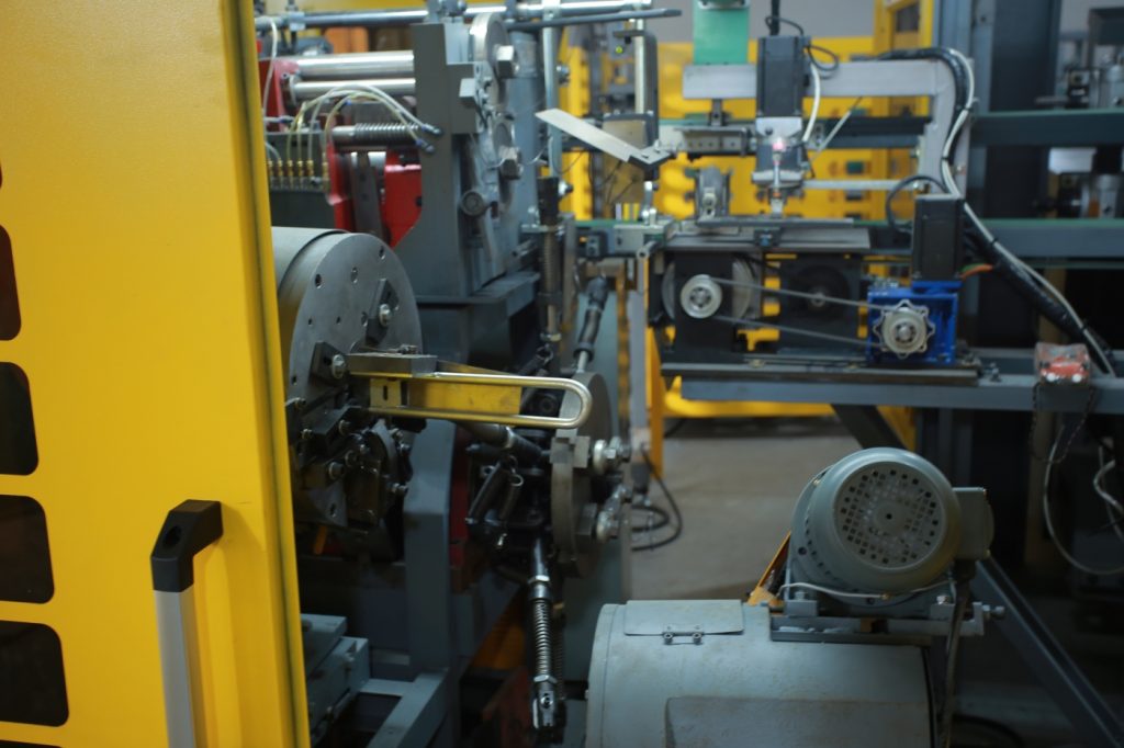 自动 博内尔 转账 机器 是生产 "Bonell "型内弹簧单元的最新型号。它可以直接从钢丝生产内簧单元。首先将钢丝卷成弹簧,然后通过自动送料系统传送并插入装配机。然后,上下弹簧同时卷绕在一起,螺旋钢丝自动卷绕、切割并夹紧两端。一个单元完成后,可自动弹出。