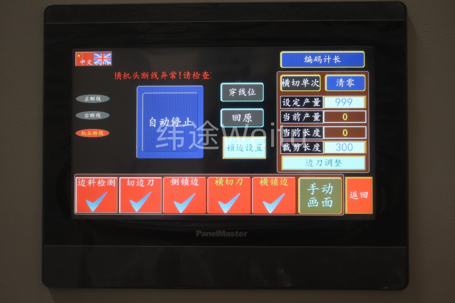 ◆ 系统具有多种功能,如输出计数、绗缝尺寸设置和针距设置。