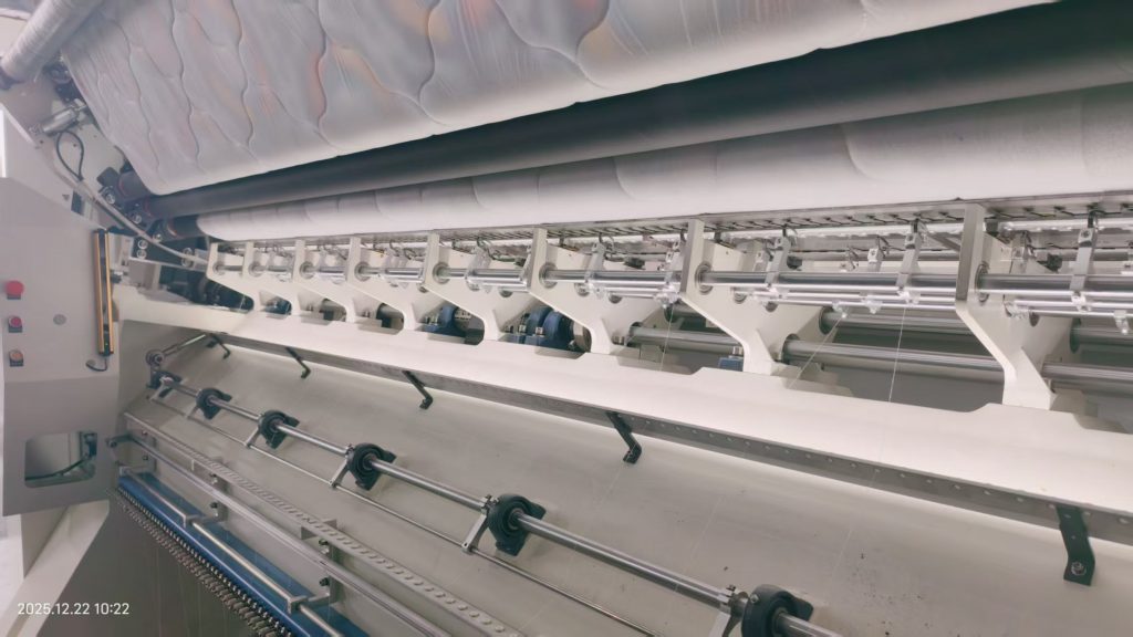 A mattress quilting machine is a heavy-duty industrial machine specifically designed to create quilted patterns on mattress covers, pads, or toppers. These machines are used primarily in the manufacturing industry for mass production of mattresses but can also be found in specialized facilities that make custom or high-end mattresses. The quilting on these products not only adds a decorative element but also improves the comfort and durability of the mattress by helping to evenly distribute the padding and batting inside.